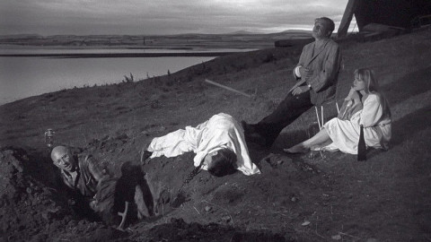Zwei geflohene Verbrecher dringen in die Einsamkeit eines nordenglischen Inselschlosses ein, das von einem skurrilen Ehepaar - dem alten George und der viel jüngeren Teresa - bewohnt wird. Während man vergeblich auf das Eintreffen des Gangsterbosses Katelbach wartet, entspinnt sich ein makabres Spiel um Macht und Abhängigkeit, bis der Hausherr den Terror eher zufällig mit einem Gewaltakt beendet.